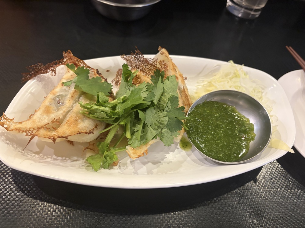 次に注文したのは、パクチーがたっぷりのったパクチー餃子です。