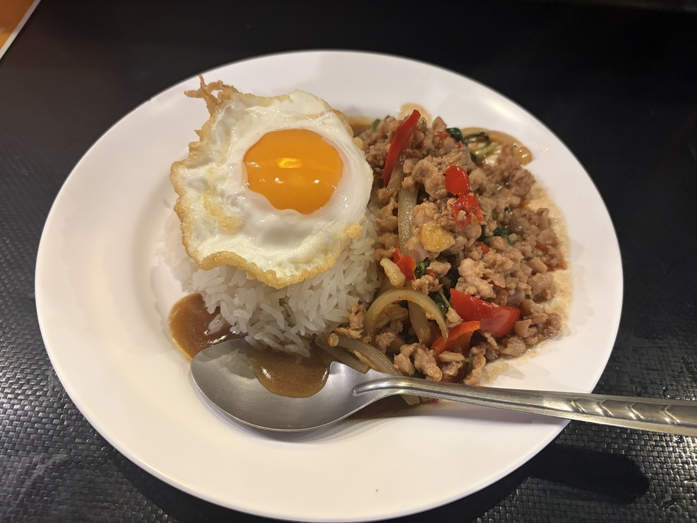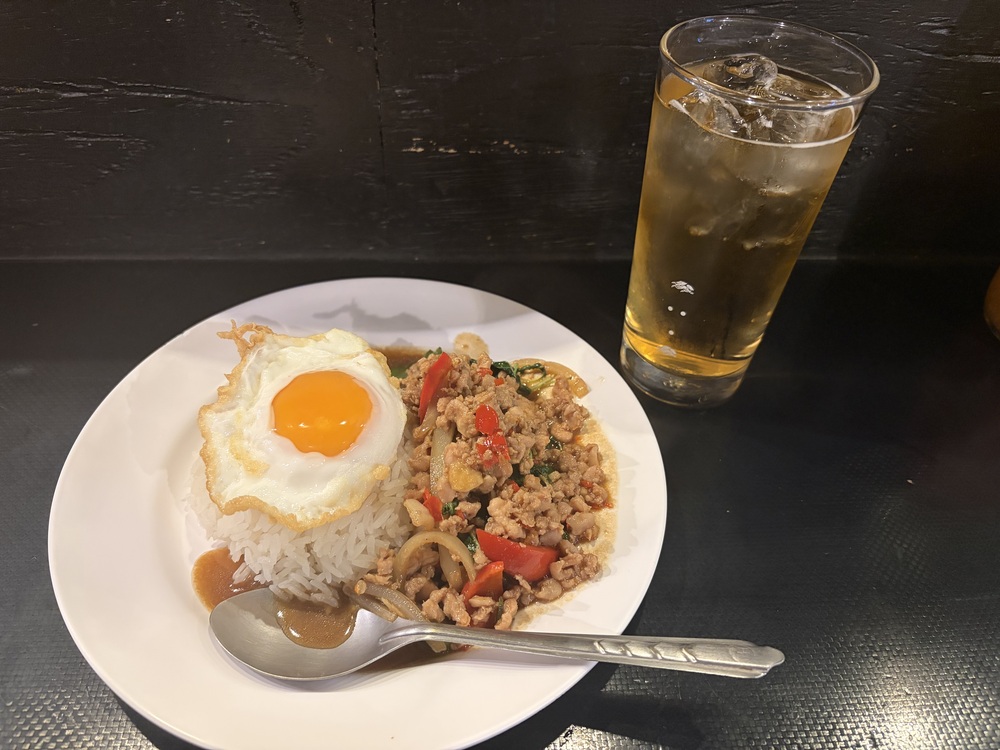 タイボール(メコン)のほのかなスパイス感とガパオライスの風味が重なり、気分はすっかりタイ旅行をしているかのようでした!