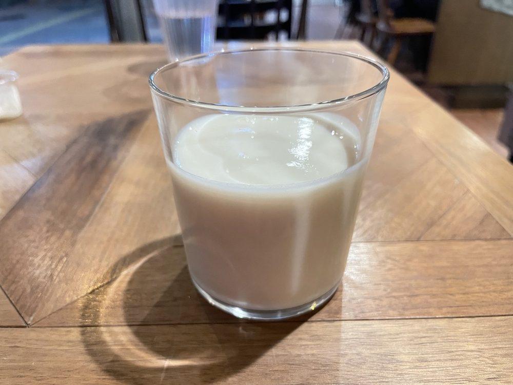 こちらはほうじ茶の豆乳。先ほどいただいたヨーグルトの豆乳はどろっとしていましたが、こちらはサラサラとしていて、より豆乳の味を濃く感じました。