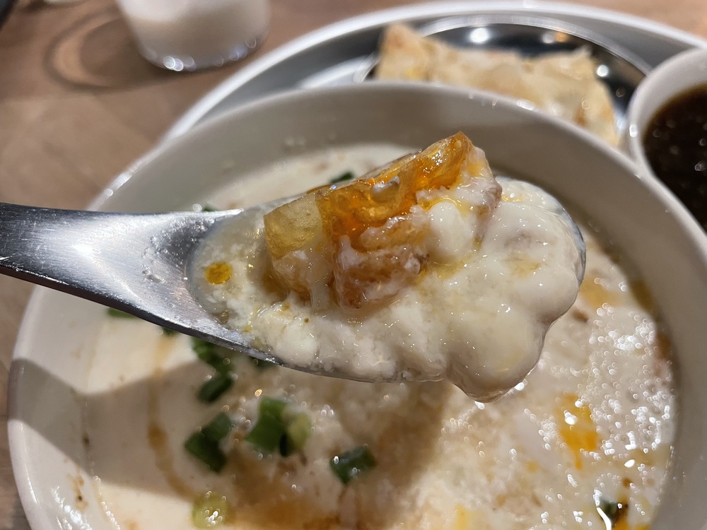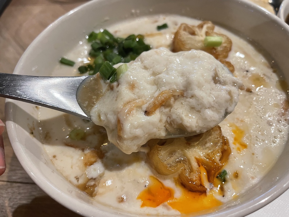 豆乳のまめまめしい味わいや滋味深いスープだけでなく、お酢も入っていることで、その酸味が全体をさっぱりとさせてくれます。
