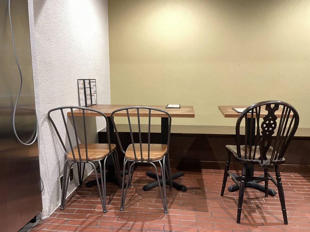 中に入ってみると、喫茶店のようなカウンター席、2名がけテーブルが4卓、4名がけテーブルが2卓、3名がけテーブルが1卓あります。