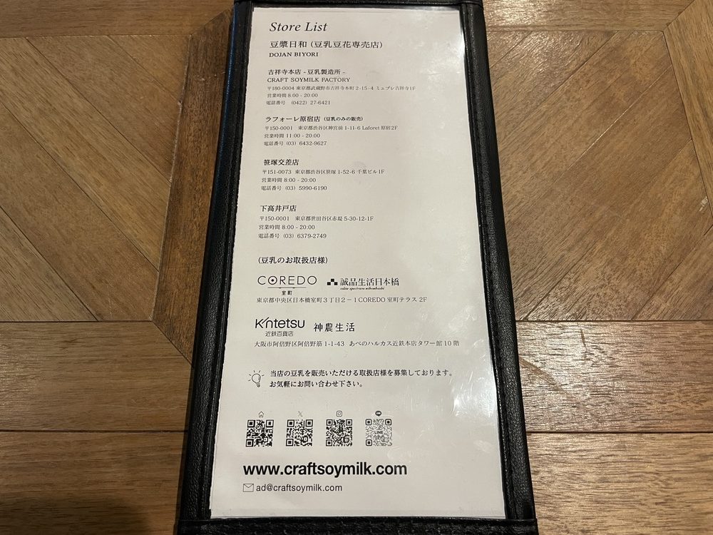 お店で取り扱っている豆乳は吉祥寺にある本店で作っているそうです。