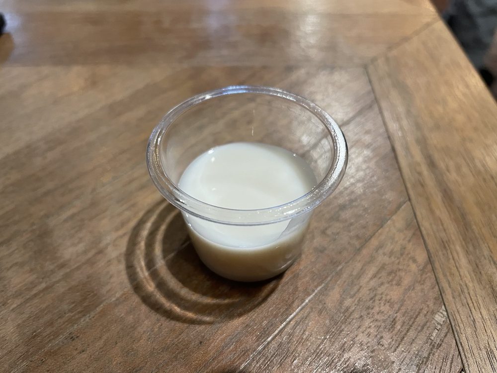 「本日の豆乳はなんですか?」と、お店の方にうかがったところ、なんと試飲させていただきました!