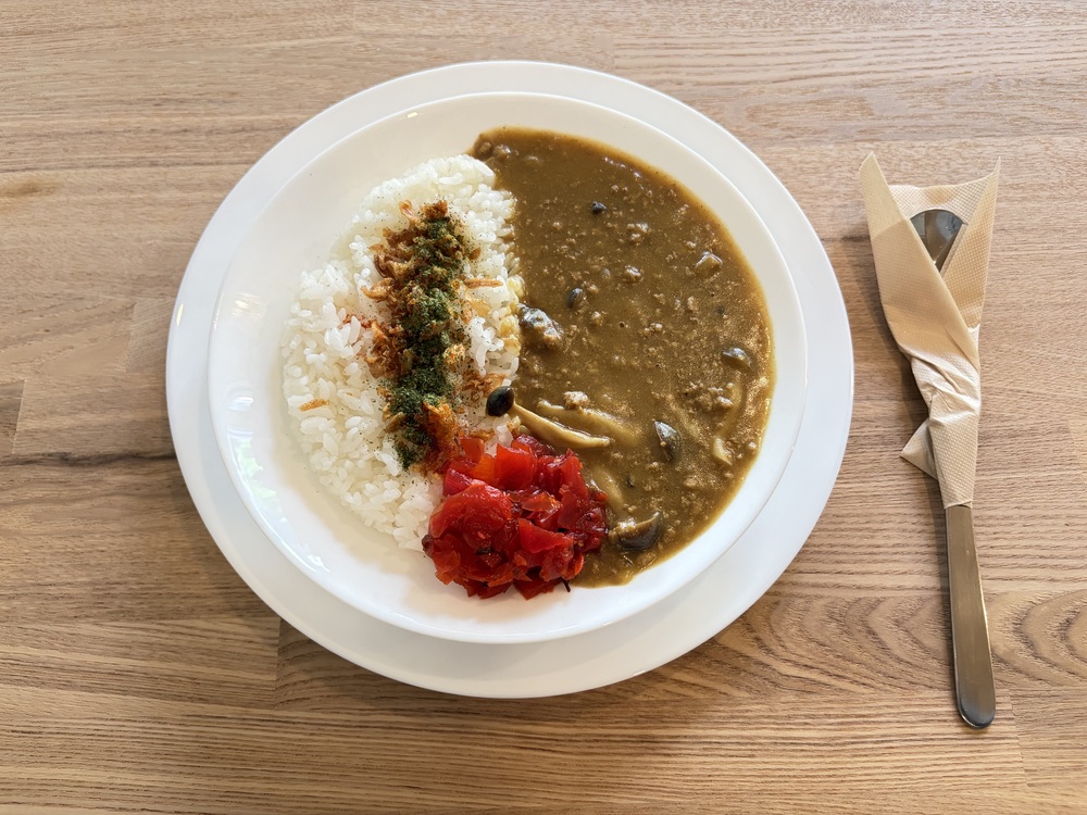 こちらのお店ではコーヒーだけでなく、自家製のカレーやアイスクリームも食べることができます。この日はアイスクリームが売り切れだったので、カレーをいただくことにしました。