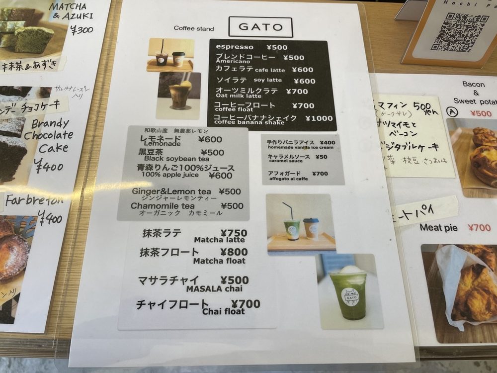 ドリンクも種類豊富で、コーヒーから抹茶系、チャイ、手作りアイスがのったフロートなどがありました。