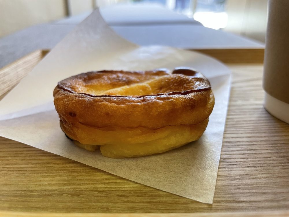 どれにしようか悩ましく、お店の方イチオシのファーブルトンとカフェラテを店内でいただくことにしました。