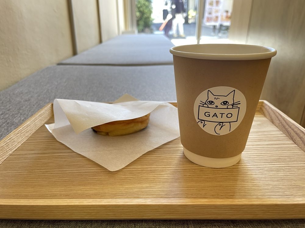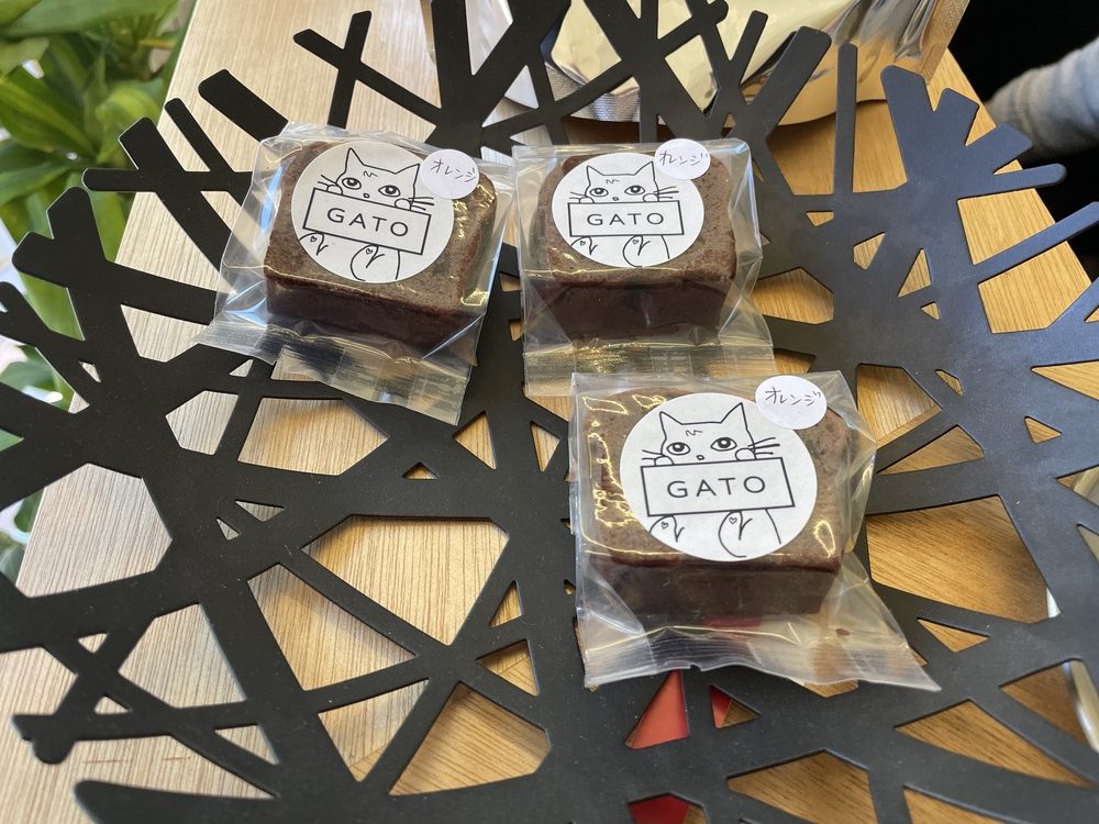 フランス語でケーキはgâteau(ガトー)、日本語で読めるように店名を「GATO」にしたところ、GATOはスペイン語で猫という意味だと後に知り、猫のイラストを描いたそうです。