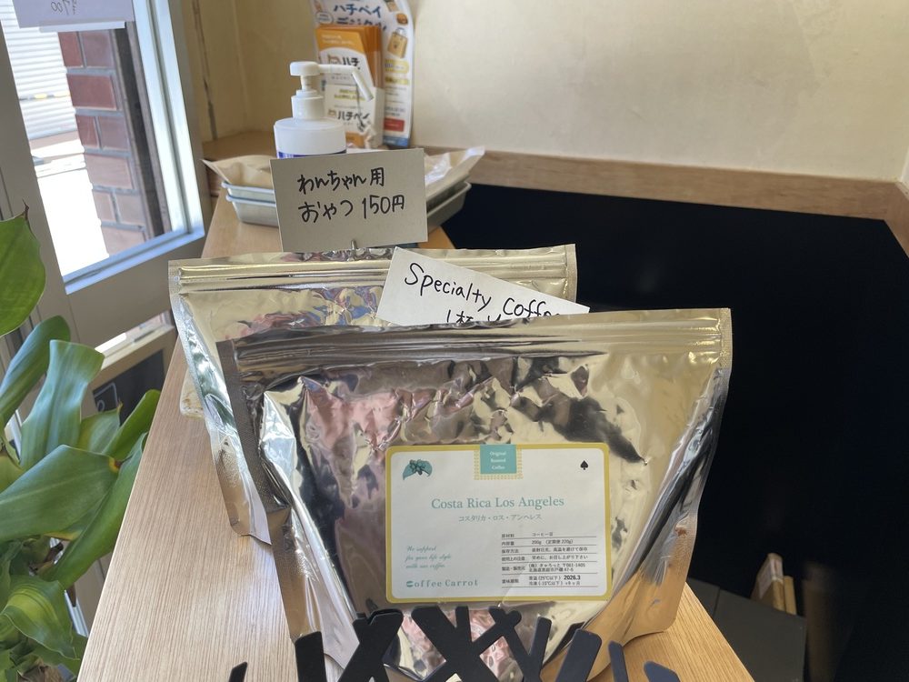 店内はワンちゃん・ネコちゃんOKなので、散歩の途中にふらりと立ち寄るのも良さそうです。わんちゃん用おやつもありましたよ♪