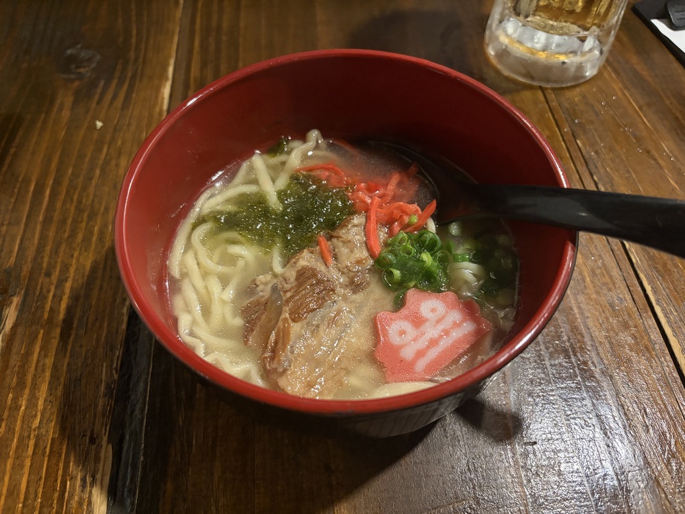 「琉球酒場に来たら、やっぱりソーキそばは食べたい!」と思っていたので、最後に味わえて大満足!心もお腹も満たされる、最高の一杯でした。