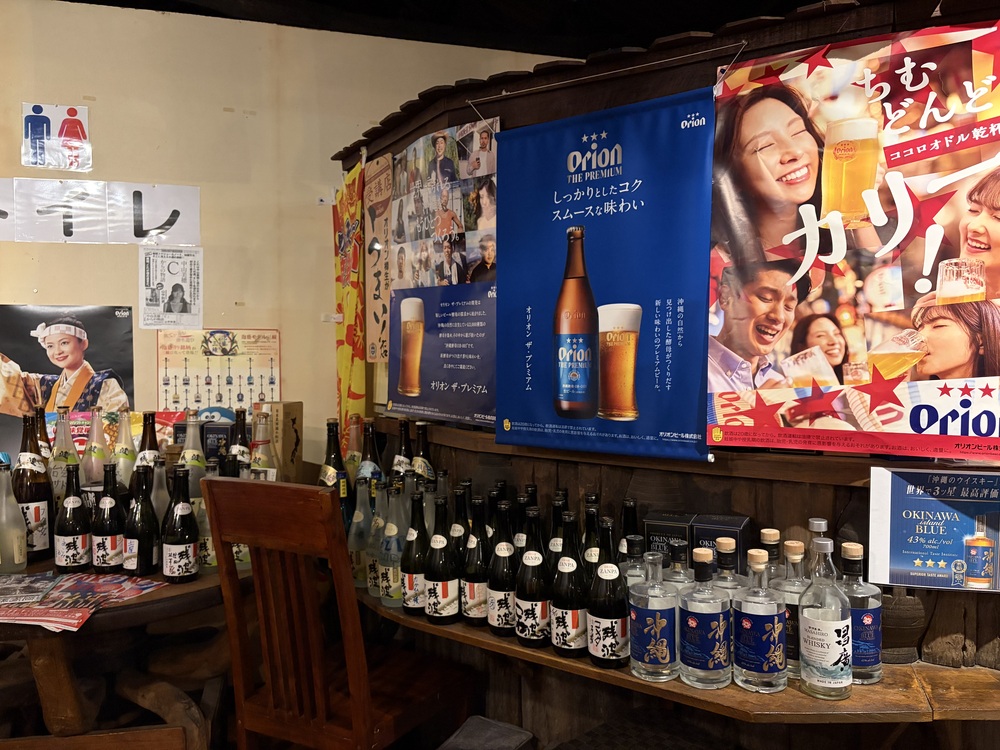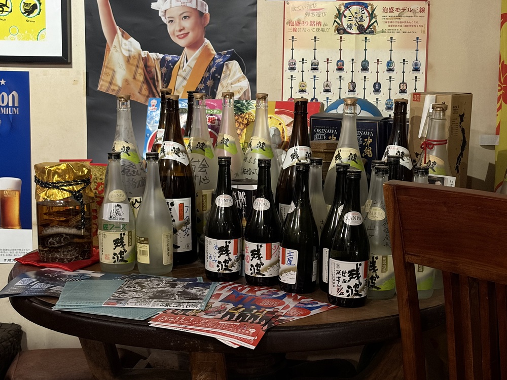 棚には、沖縄ならではのお酒がずらりと並び、見ているだけで気分はすっかり南国気分!