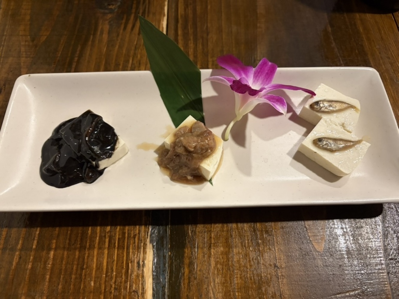 島豆腐とスミイカの風味のコンビに泡盛を合わせれば、気分はもうすっかり沖縄!口に運ぶたび、南国の風がふわりと吹き抜けるような心地よさです。