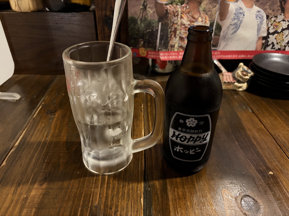 すると店員さんが「ホッピーで割って飲むのが人気ですよ!白と黒、どちらにしますか?」