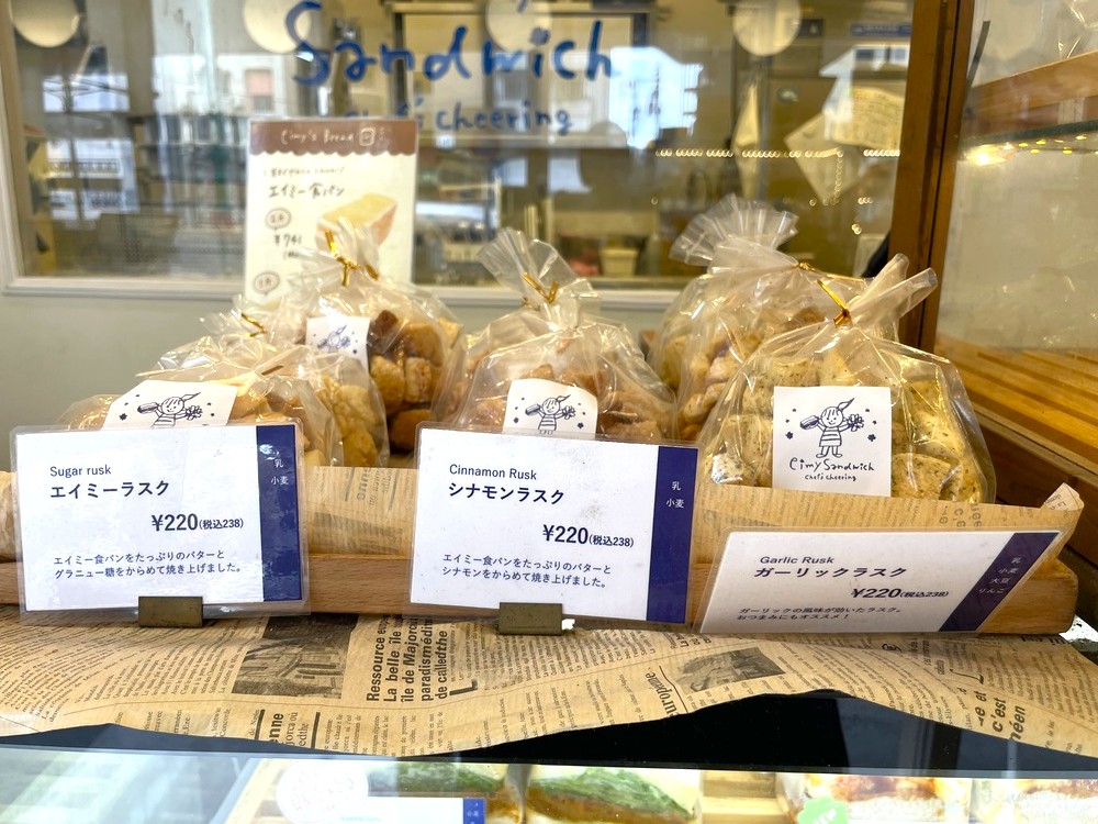 こちらは、エイミー食パンを使用したラスク。かわいらしい包装で、ついつい手に取りたくなりますね。