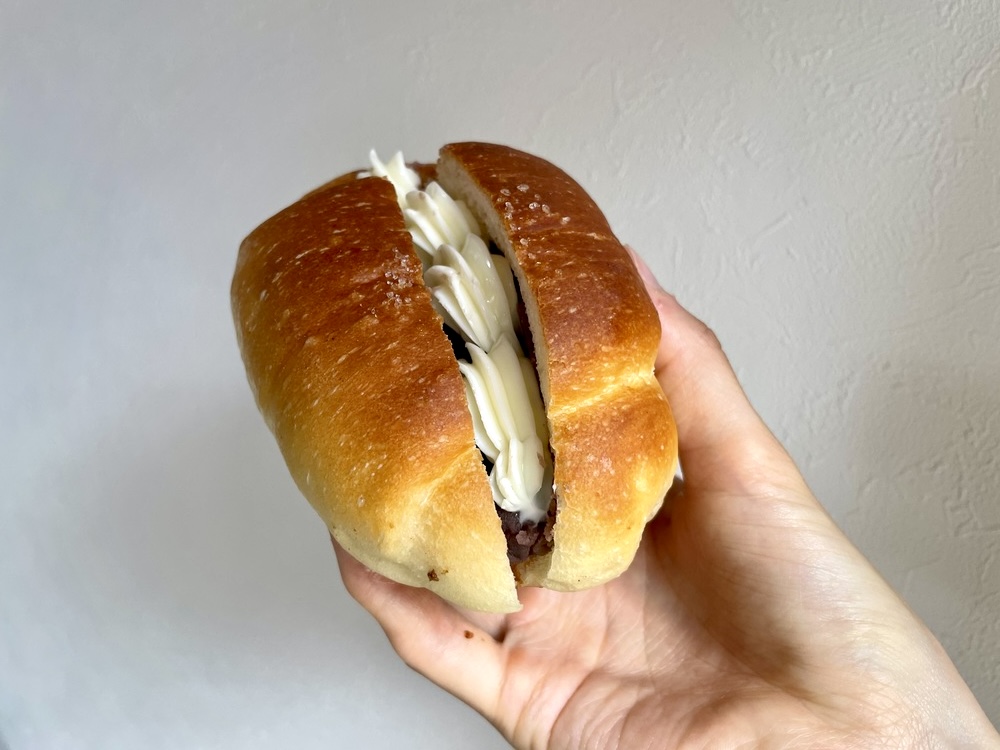 カリッジュワもちっとした塩バターパンの上に、こだわりのバター×あん!間違いないおいしさでした。