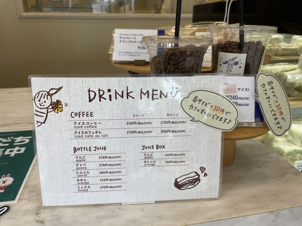パン屋さんとは思えない、本格的なドリンクもそろっていました。