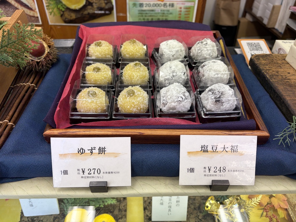 ゆず餅や塩豆大福は、手頃なサイズ感で、どこか可愛らしさも感じられます。昔、祖父母の家を訪れると、お菓子籠に大福餅が入っていたことを思い出しました。