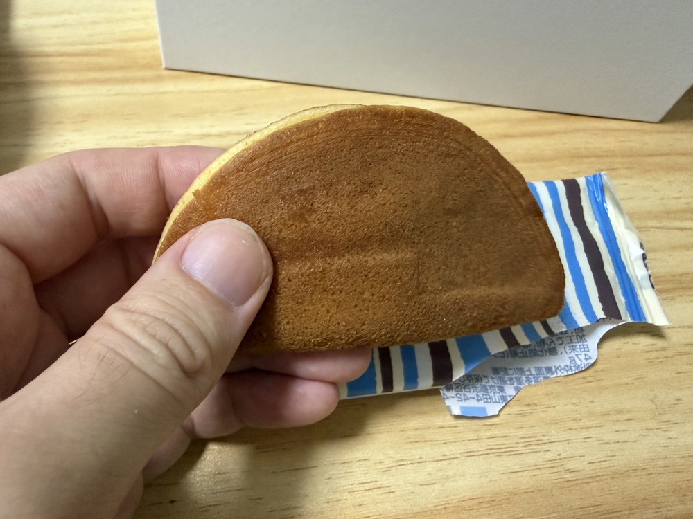 もちどら焼きはもちやすいサイズで手で持った瞬間からモチモチ感が伝わってきます。
