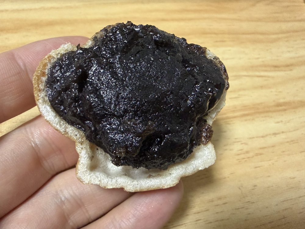 胡麻風味の和菓子が好みということもあり、こちらをいただくのを楽しみにしていました。最中の中には胡麻あんがたっぷりと詰まっており、見た目にも満足感があります!