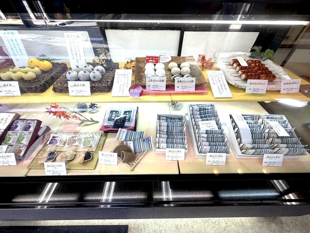 店内に入ると、さまざまな和菓子がケースの中に美しく並び、どれを選ぶか思わず迷ってしまいます。